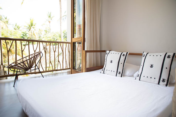 Located on the second floor at the back of the property, the PAL’ COCO Comfort Suite is a quiet and inviting space with lovely views of the garden and pool area. The separate bedroom features a king bed and a private bathroom, while the living area includes a fully equipped kitchen with a four-burner stove, microwave, toaster, blender, coffee maker, refrigerator, and all essential utensils. A spacious dining area opens onto a private balcony through large foldable glass doors, creating a bright and airy atmosphere that seamlessly blends indoor and outdoor living. The sofa in the dining area can be pulled out to accommodate up to two children, making this suite a comfortable option for families. As with all our suites, it is equipped with air conditioning, ceiling fans, and a safe. Complimentary coffee and drinking water are provided.