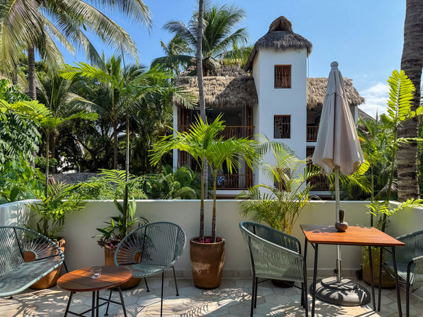 The PAL’ ESTAR Suite Grande is one of our most spacious and comfortable suites, perfect for long-term stays. It features a separate bedroom with a king-size bed, a large bathroom, and a fully equipped kitchen with a four-burner stove, oven, full size refrigerator, coffee maker, toaster, blender, and cooking utensils. In addition to the indoor dining area, guests can enjoy a generous private terrace with both a sitting area and a dining table—an ideal space for relaxing or entertaining. As with all our accommodations, the suite is equipped with air conditioning, ceiling fans, a safe box, and complimentary coffee and drinking water are provided.